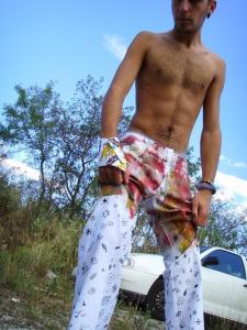 Pantalon blanc peint à la main.